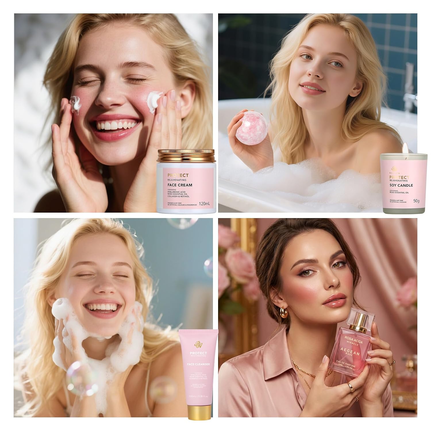 Skin-Loving Ingredients: All Rosa Acca products are made from skin-loving ingredients you want. Rich in rose essential oils, ceramide, shea butter, argan oil, coconut oil and hyaluronic acid, it can effectively cleanse and moisturize your skin, Whether you have dry, oily or normal skin, our skincare & spa set is suitable for all skin types