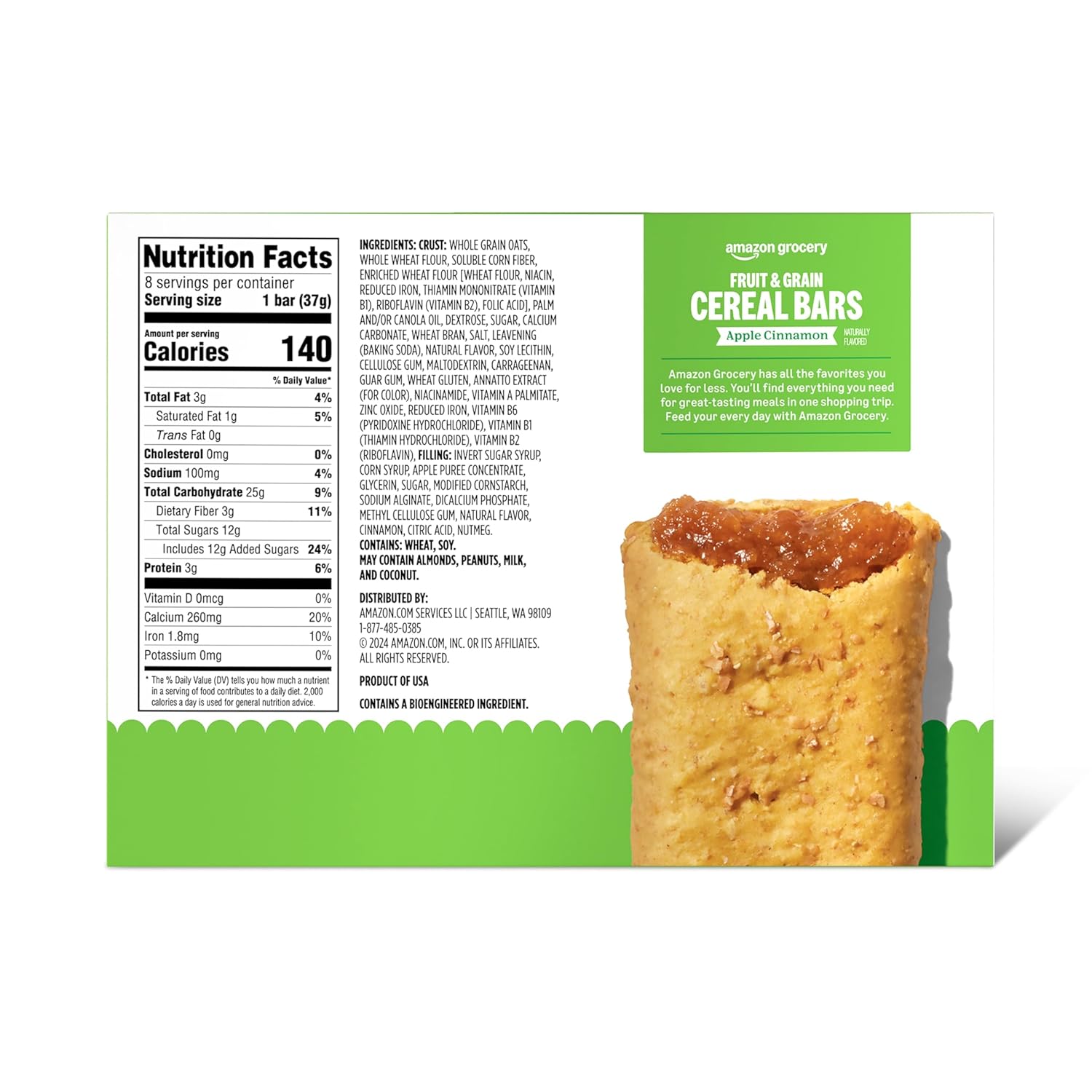 Amazon Grocery, Apple Cinnamon Fruit & Grain Cereal Bars, 1.3 Oz, 8 Ct