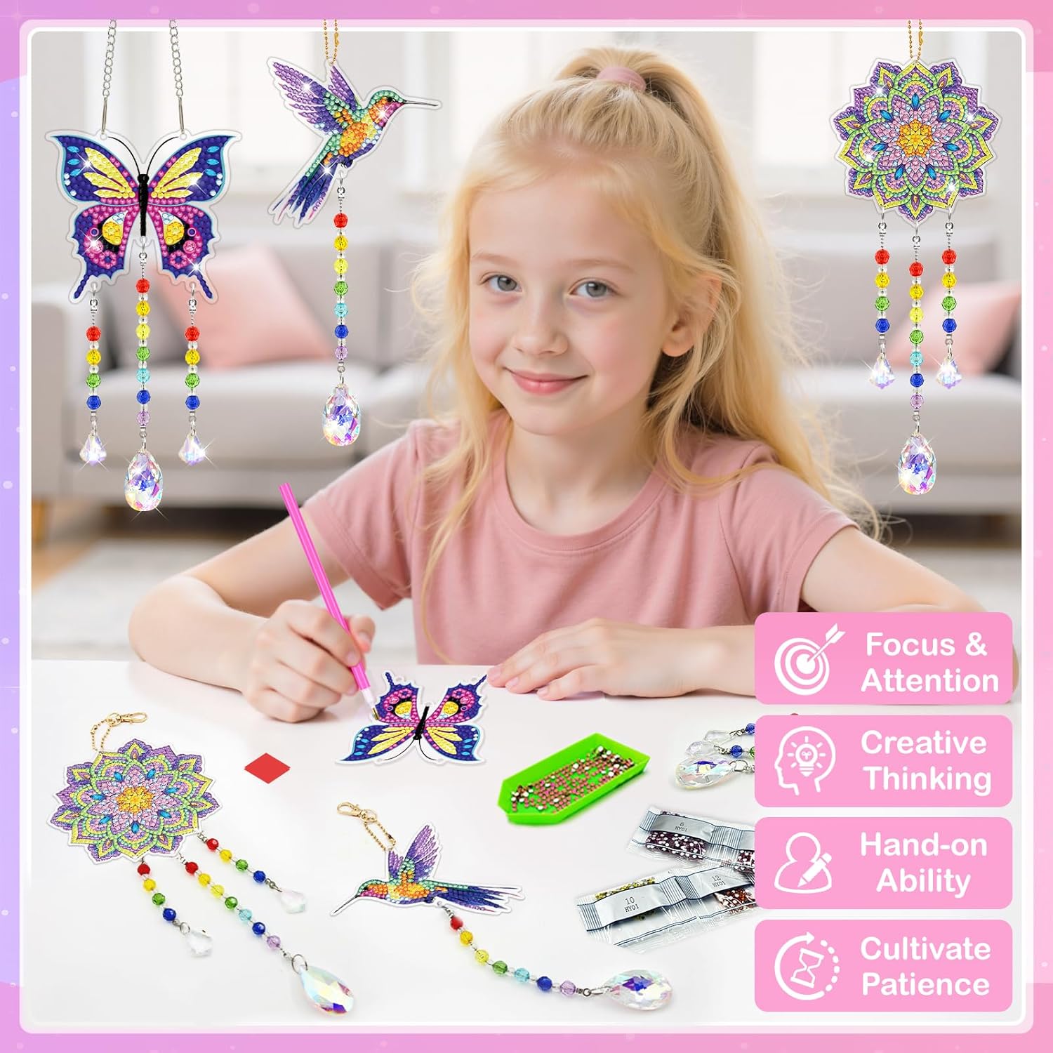 Specification: Arts and Crafts for Kids Ages 8-12, Diamond Art Kits for Kids Birthday Gifts for 5 6 7 8 9 10 11 Year Old Girls Diamond Painting Kits for Adults Teen, Gem Art Suncatcher Wind Chime for Home Garden