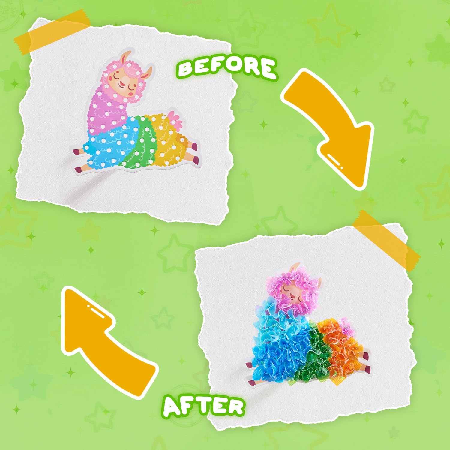 【MESS-FREE CREATIVE FUN】Engage your child’s imagination with this vibrant poke poke art activity! Kids can poke and decorate Colorful Party-themed designs—including a fluffy llama, playful lion, juicy pineapple, cute umbrella, and heart shape—using soft fabric squares and foam bases. It’s 100% mess-free: no glue, cutting, painting, or coloring required, so parents can relax while kids create.