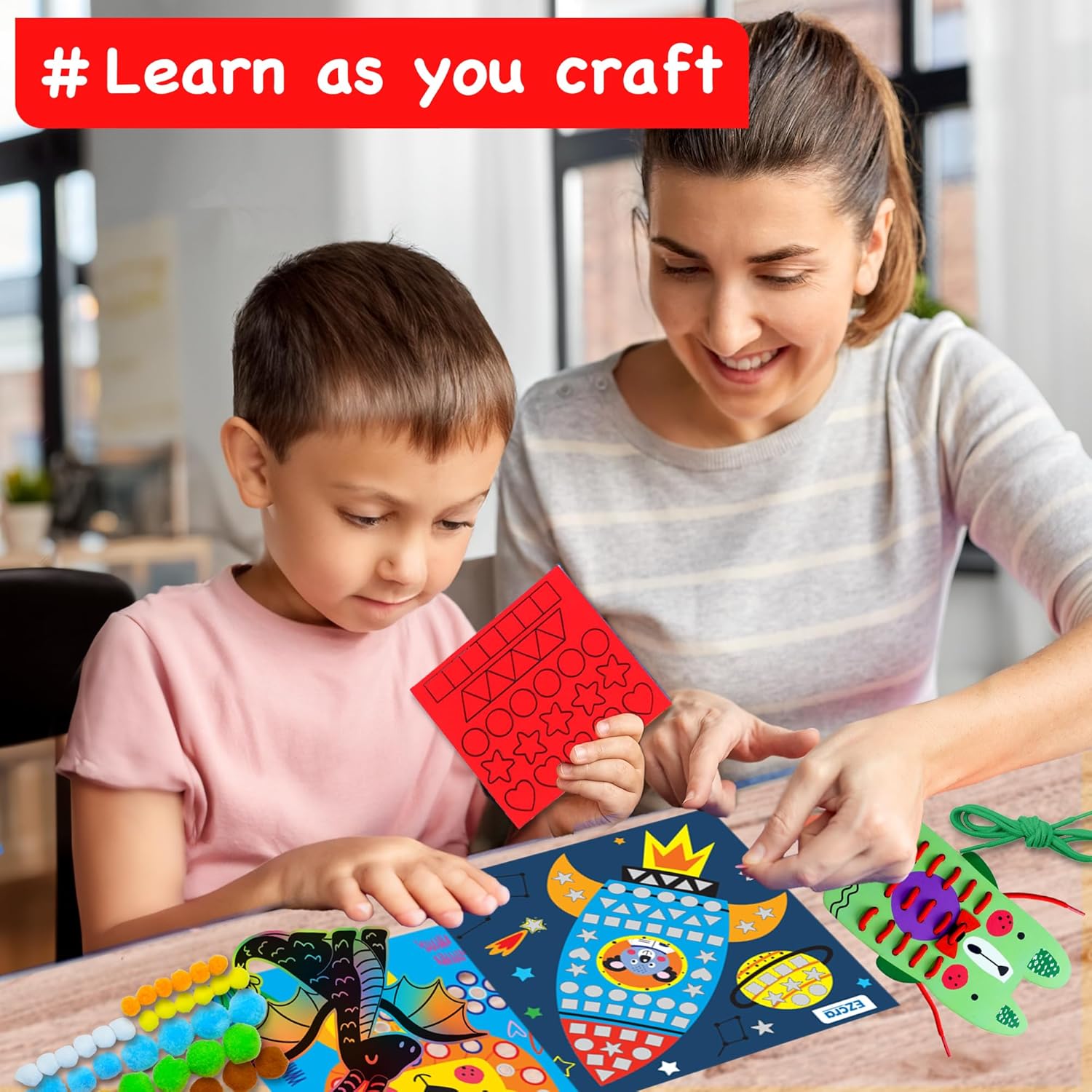Lacing Cards, Felt Mask and Felt Hand Puppet3D Puzzle, Gem Art, Paper Airplanes and Foam ArtScratch Art, Card Making and Pom Pom Art