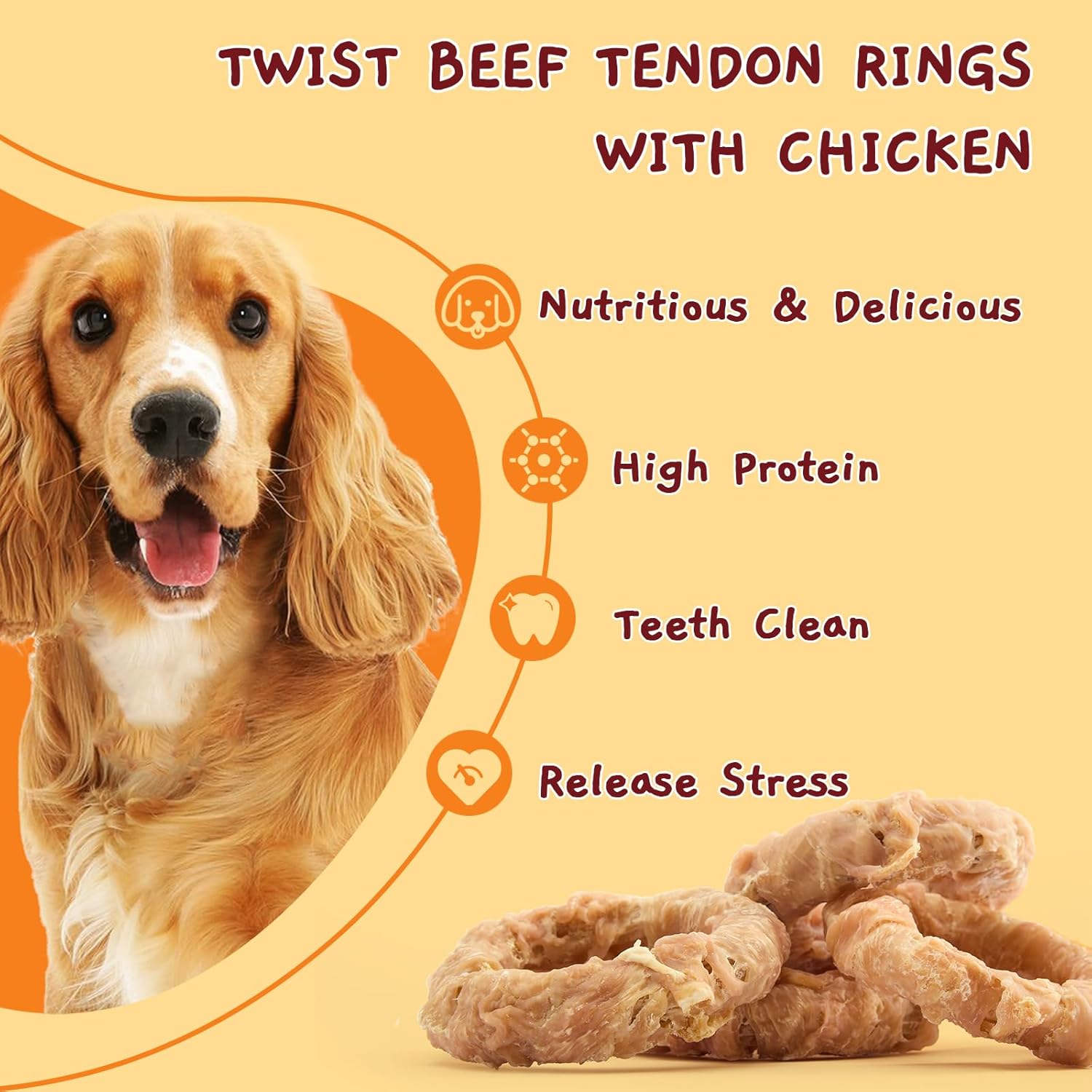 Specification: Jungle Calling Beef Tendons for Adult Dogs, Chicken Wrapped Tendons Dog Chews Long Lasting Hip and Joint Supplement for Dogs with Glucosamine (Ring)
