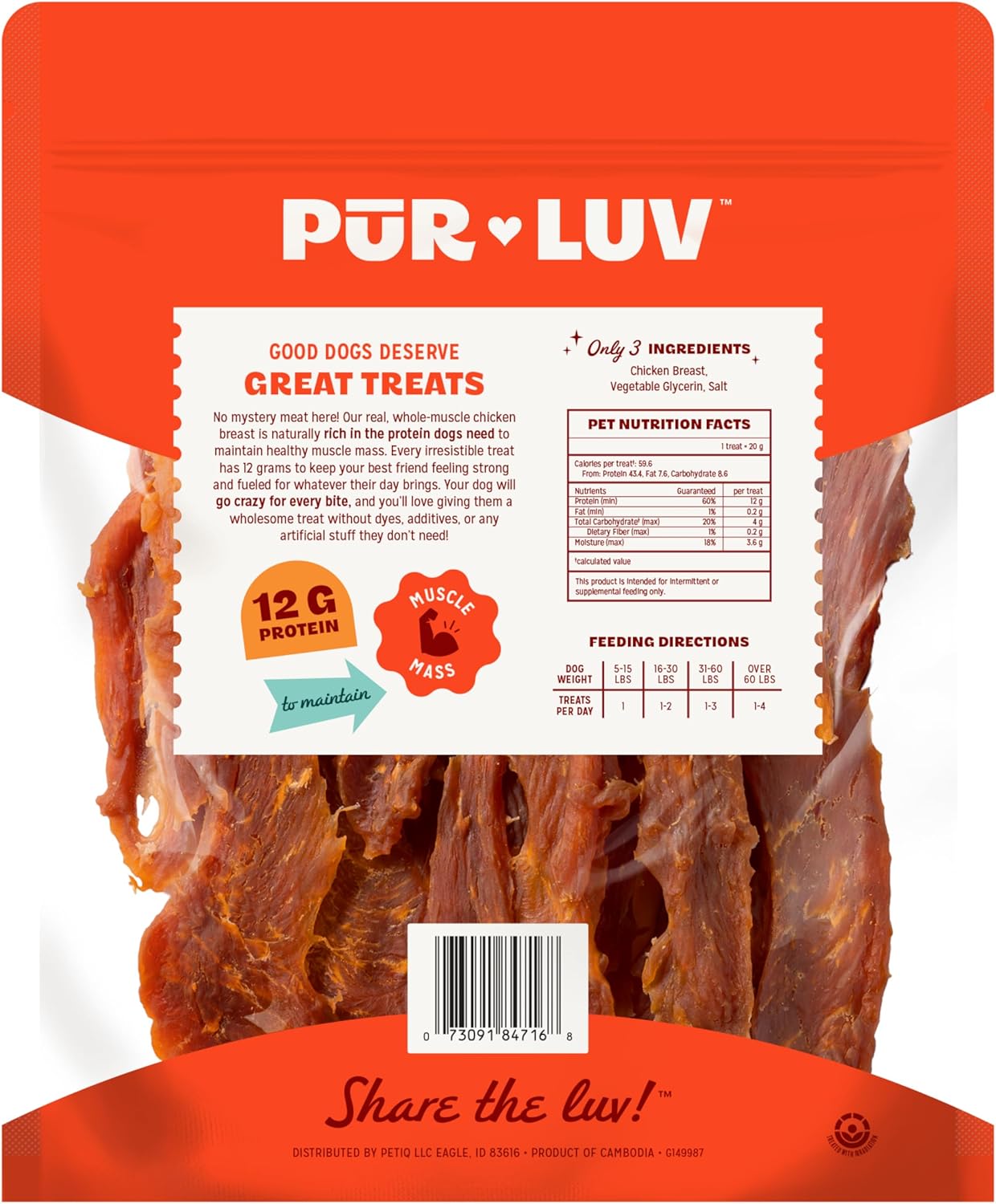 Pur Luv Chicken Jerky Dog Treats, Made with 100% Real Chicken Breast, 16 Ounces, Healthy, Easily Digestible, Long-Lasting, High Protein, Satisfies Dog’s Urge to Chew