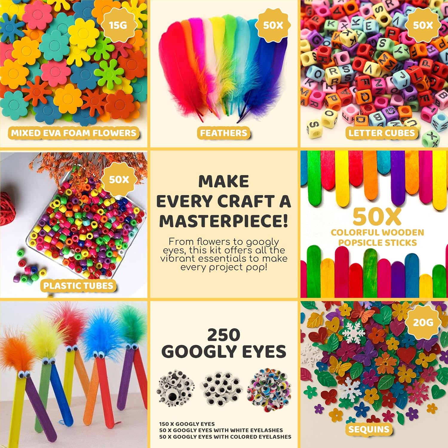 HOURS OF CREATIVE FUN: Keep little hands busy and minds engaged for hours! This arts and crafts set includes everything needed to make colorful creations — from school crafts to home decorations. Whether you’re looking for craft supplies for kids ages 4–8 or craft supplies for classroom projects, this kit offers non-stop entertainment.