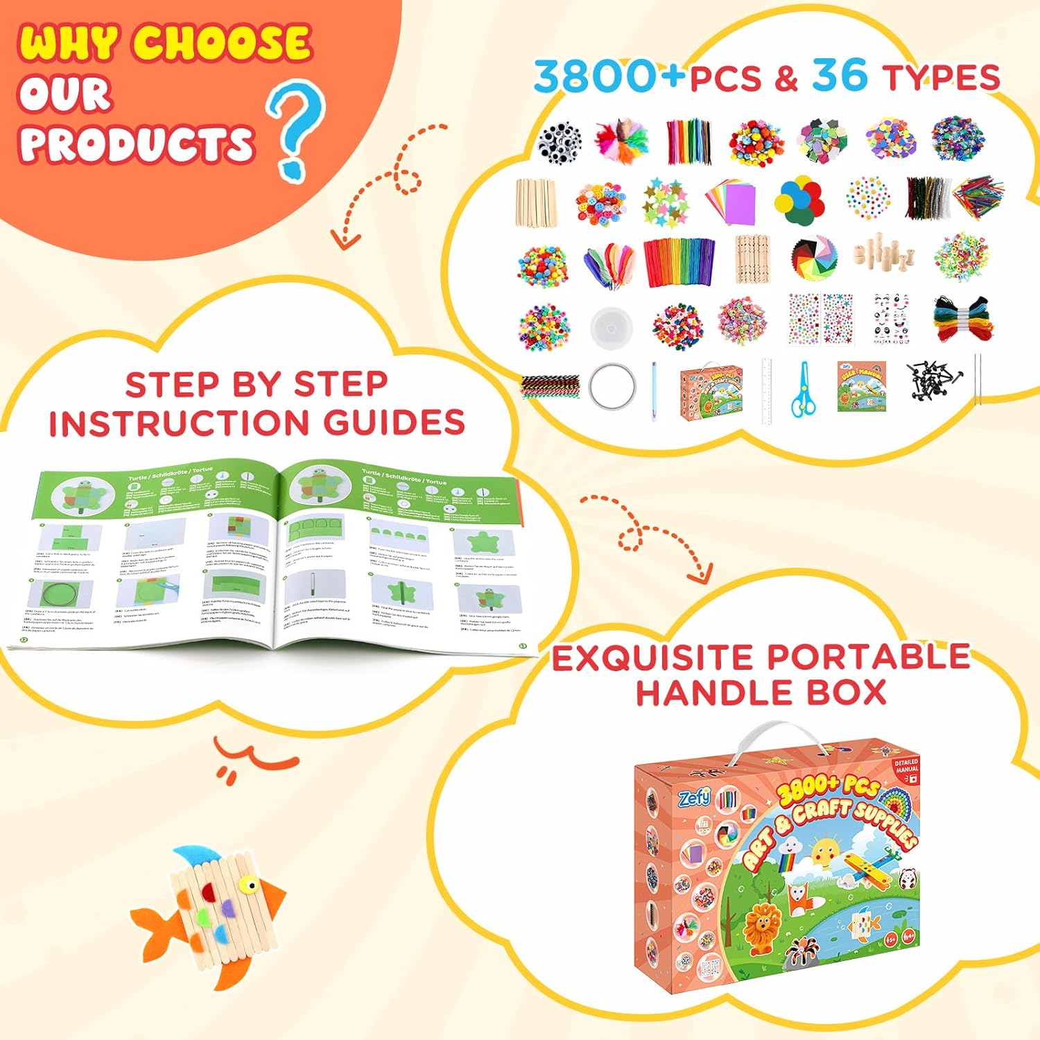 Specification: Zefy 3800+ Pcs Arts and Crafts Kit Supplies for Kids, All in One Art Supplies with 20 Crafts Design, DIY Craft Box Set School Supplies Gifts Toys for Girls Boys Ages 4-12